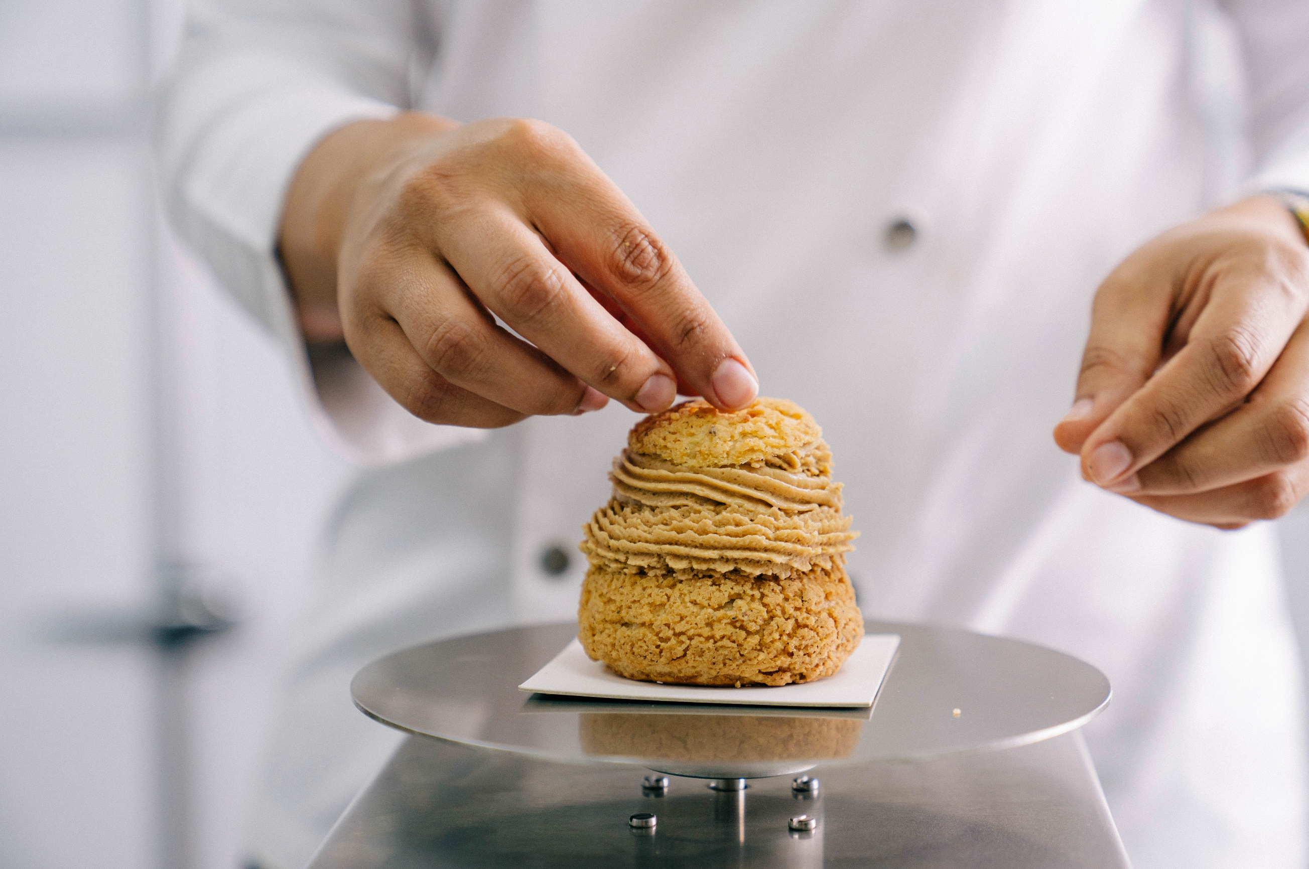 Vanille entière, agrumes de saison chocolats de terroir, pistache, figue : nous choisissons des ingrédients capables d’exprimer un relief aromatique sans lourdeur. Le Labo respecte la nature des produits : zeste au cordeau, jus mesuré, torréfaction douce, tempérage précis.