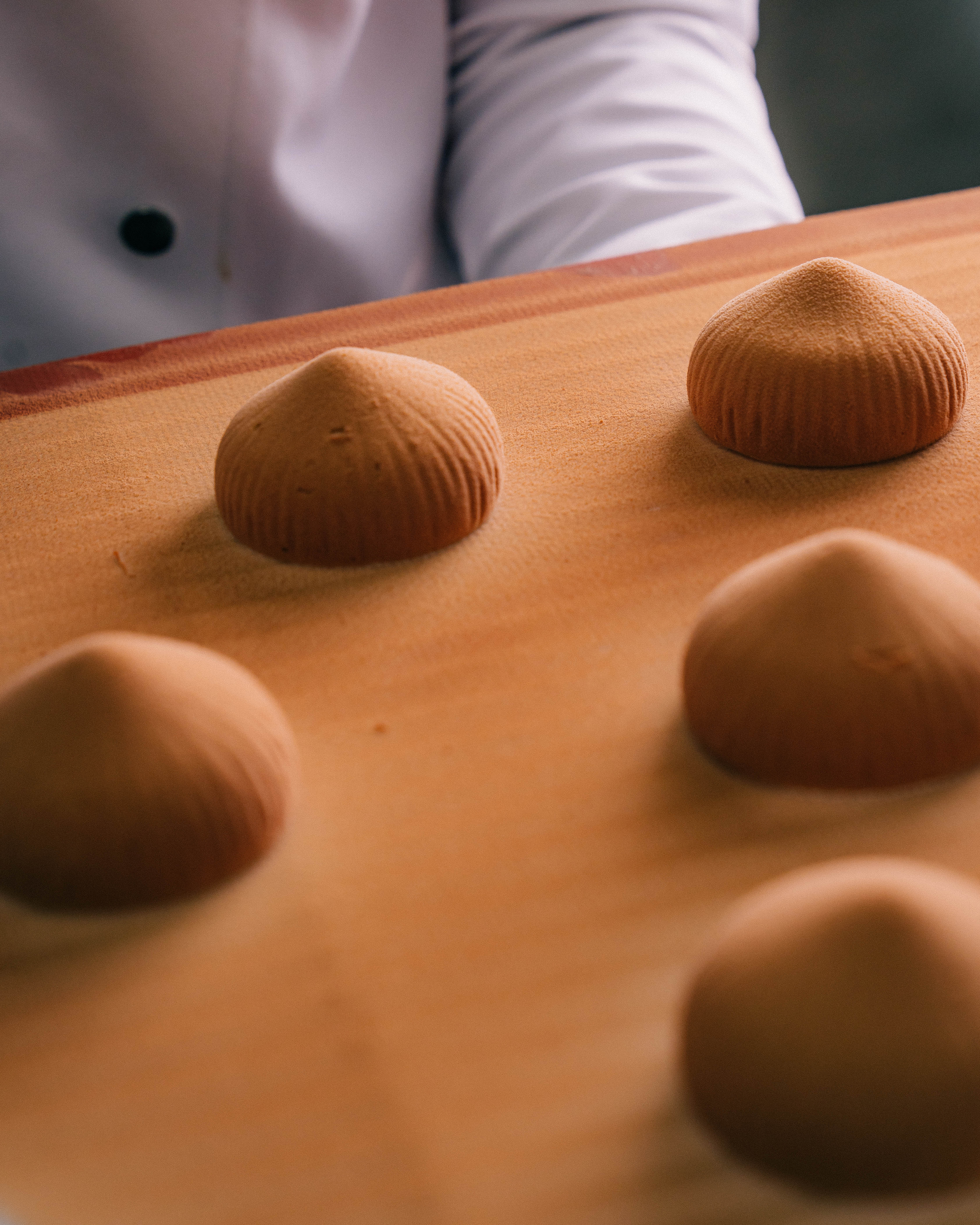 Fermentations tenues, repos nécessaires, prises au froid calculées : nous travaillons la durée pour obtenir des textures nettes et des saveurs franches. Un entremets s’épanouit après repos ; une viennoiserie se tend à la sortie du four. Le bon moment fait la différence.